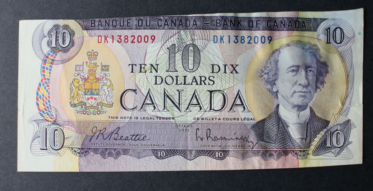 E25-ii BC-49A 1971 Canada $10 Bank Note, Cut out of register VF