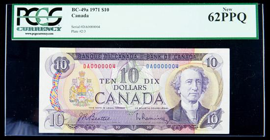 BC-49a 1971 $10. PCGS New 62PPQ. Serial number DA0000004.