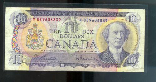 BC-49aA 1971 $10 Beattie-Rasminski *DE9606839 F+, a very rare and seldom offered replacement note. Missing in most advanced collections.