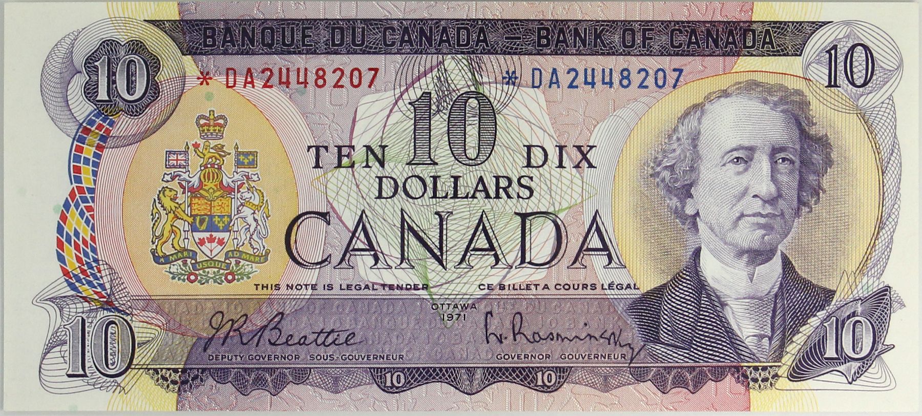 BC-49aA 1971 $10 *DA PMG GEM UNC65 EPQ Replacement Beattie-Rasminsky SN: *DA2448207