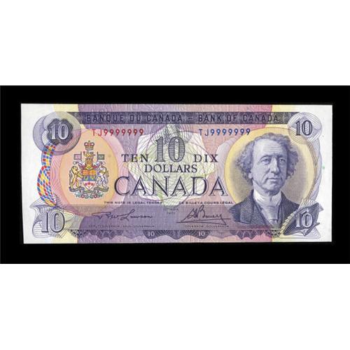 <B>BC-49c $10 1971 Solid Nine Serial Number</B></I><BR> Seven nines in a row are noticed on this Canadian issue from the T-J block. A light vertical fold is noticed along the right side. <B>Choice About Uncirculated</B></I>.<BR><BR><b>Shipping:</b> Coins & Currency (<a target="_blank" href="http://www.heritageauctions.com/common/shipping.php">view shipping information</a>)