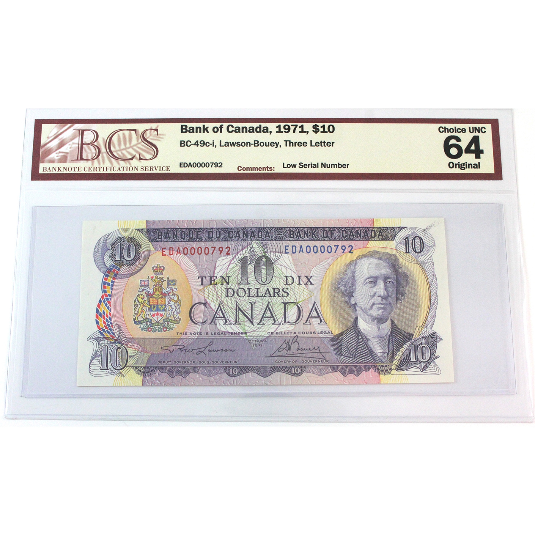 BC-49c-i 1971 $10 Low Serial # EDA0000792 BCS CUNC64 Original Lawson-Bouey
