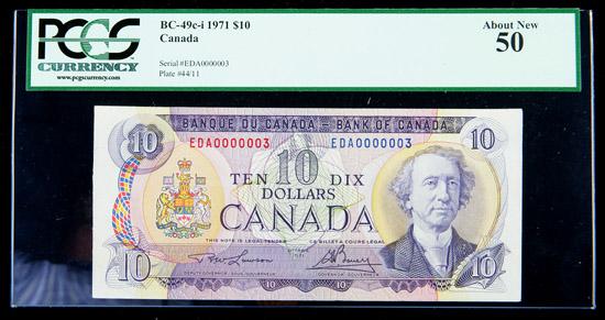 BC-49c-i 1971 $10. PCGS About New 50. Serial number EDA0000003.