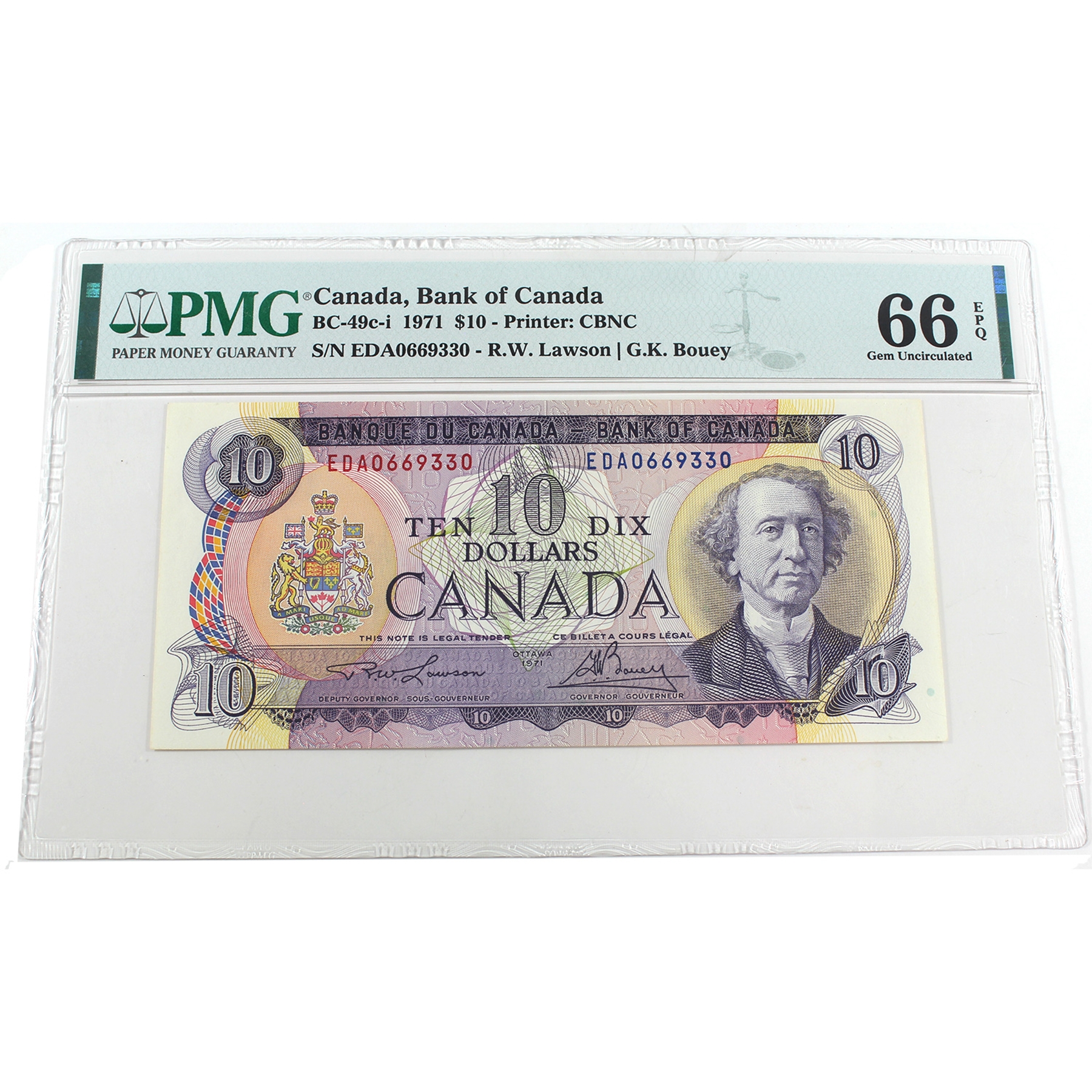 BC-49c-i 1971 $10 PMG GEM UNC66 EPQ Lawson-Bouey SN:EDA0669330