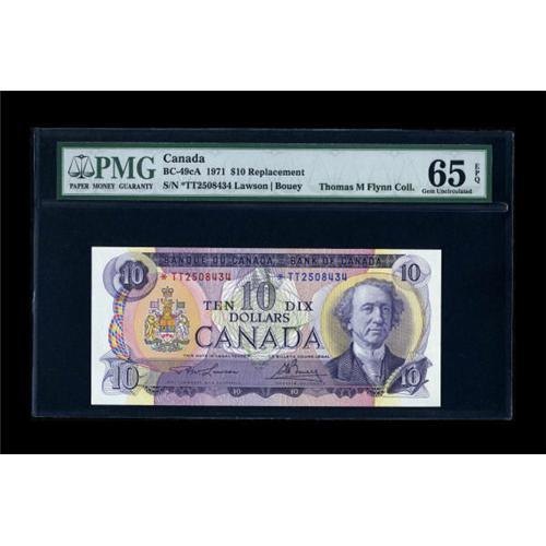 <B>BC-49cA $10 1971</B></I><BR> A second example of this replacement, this in a PMG <B>Gem Uncirculated 65 EPQ </B></I>holder. Buy both pieces and you have the beginnings of a high end PMG grading set. <BR><I>From The Thomas M. Flynn Collection</B></I><BR><BR><b>Shipping:</b> Coins & Currency (<a target="_blank" href="http://www.heritageauctions.com/common/shipping.php">view shipping information</a>)