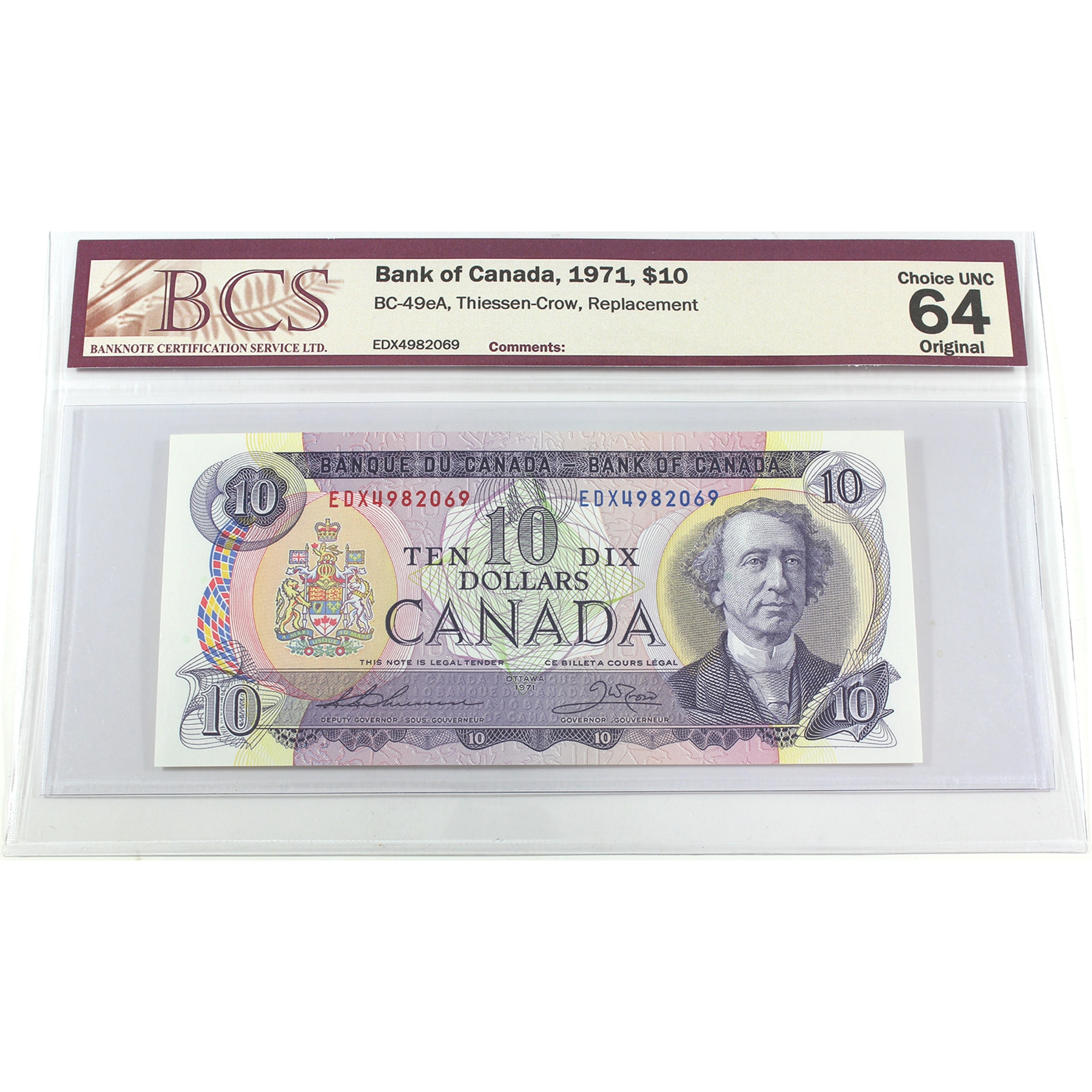 BC-49eA 1971 $10 EDX Replacement BCS CUNC64 Original Thiessen-Crow SN: EDX4982069