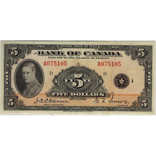 BC-5 1935 $5 A075105 Osborne a nice and clean EF example