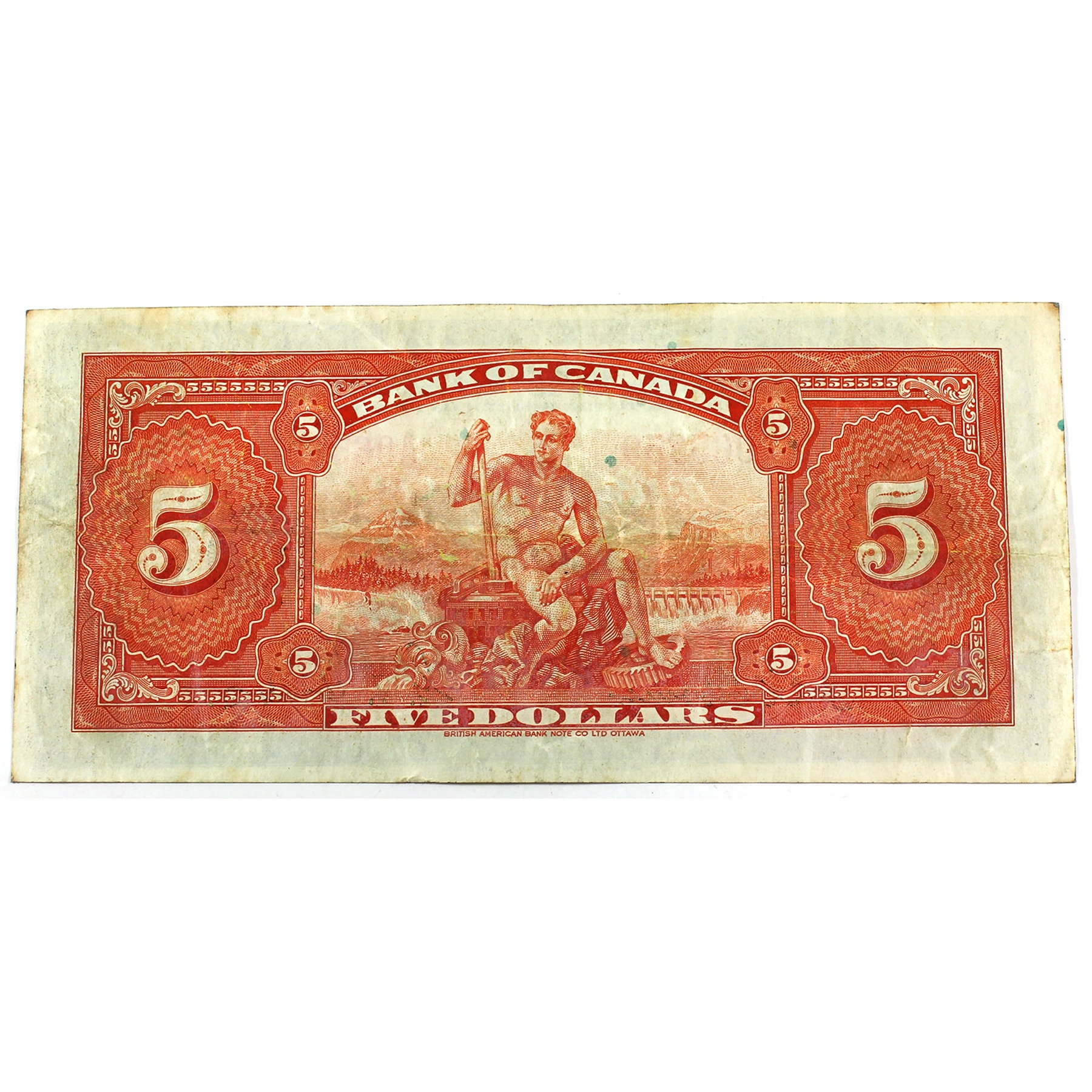 BC-5 1935 $5 English AU or Better, Osborne-Towers SN: A065859 Check Letter A