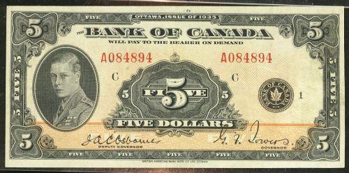 BC-5 1935 $5 English text A084894 EF+. A nice bright note.