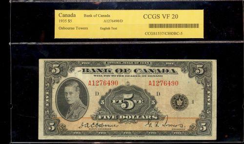 BC-5 1935 $5 English text A1276490 "CCGS VF20".