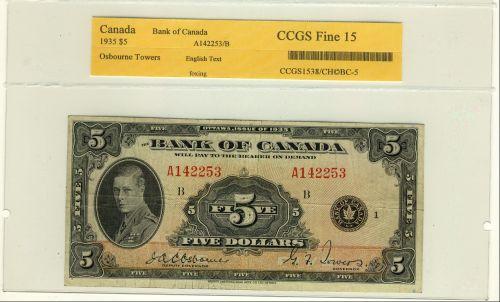 BC-5 1935 $5 English text A142253"CCGS F15".