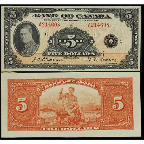 BC-5 1935 $5 English text #A214608 PMG UNC-64. Bright with vibrant colours. Rare this nice