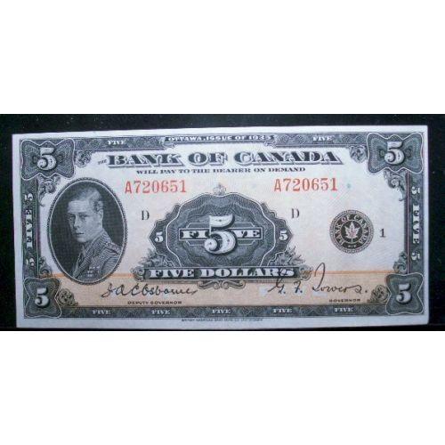 BC-5 1935 $5 English text A720651 EF+. A nice bright note.