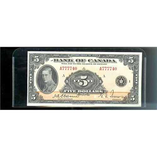 BC-5 1935 $5 English text A777740. A nice and original AU note.