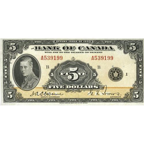 <B>BC-5 $5 1935</B></I><BR>A high end circulated specimen with good color and eye appeal. <B>Extremely Fine-About Uncirculated.</B></I><BR><I>From The Halton Lake Collection</B></I>