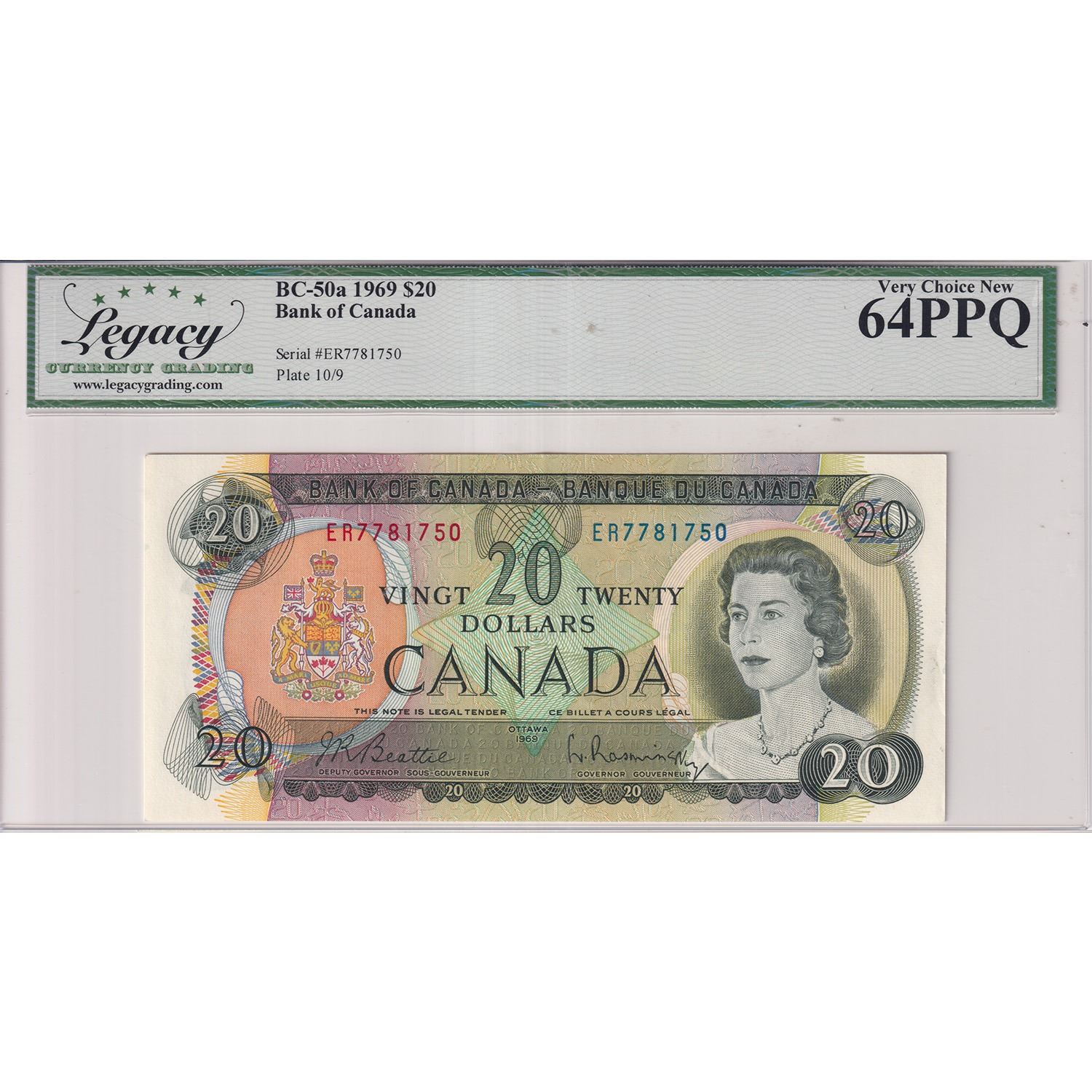 BC-50a 1969 Bank of Canada $20, Beattie-Rasminsky, Legacy CUNC64 PPQ