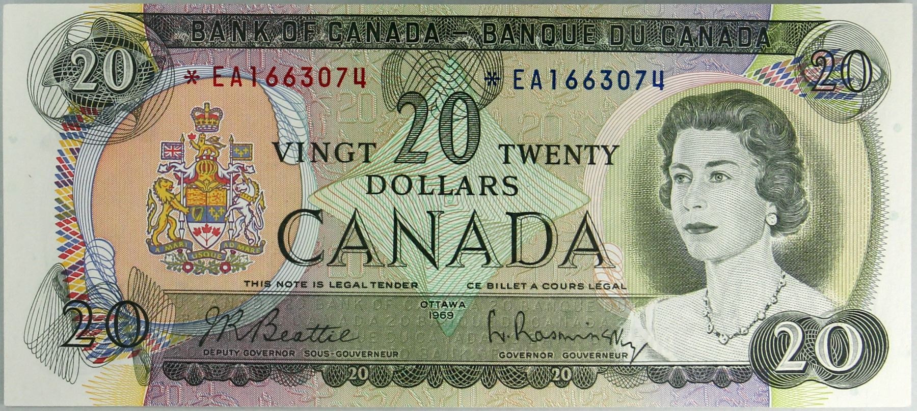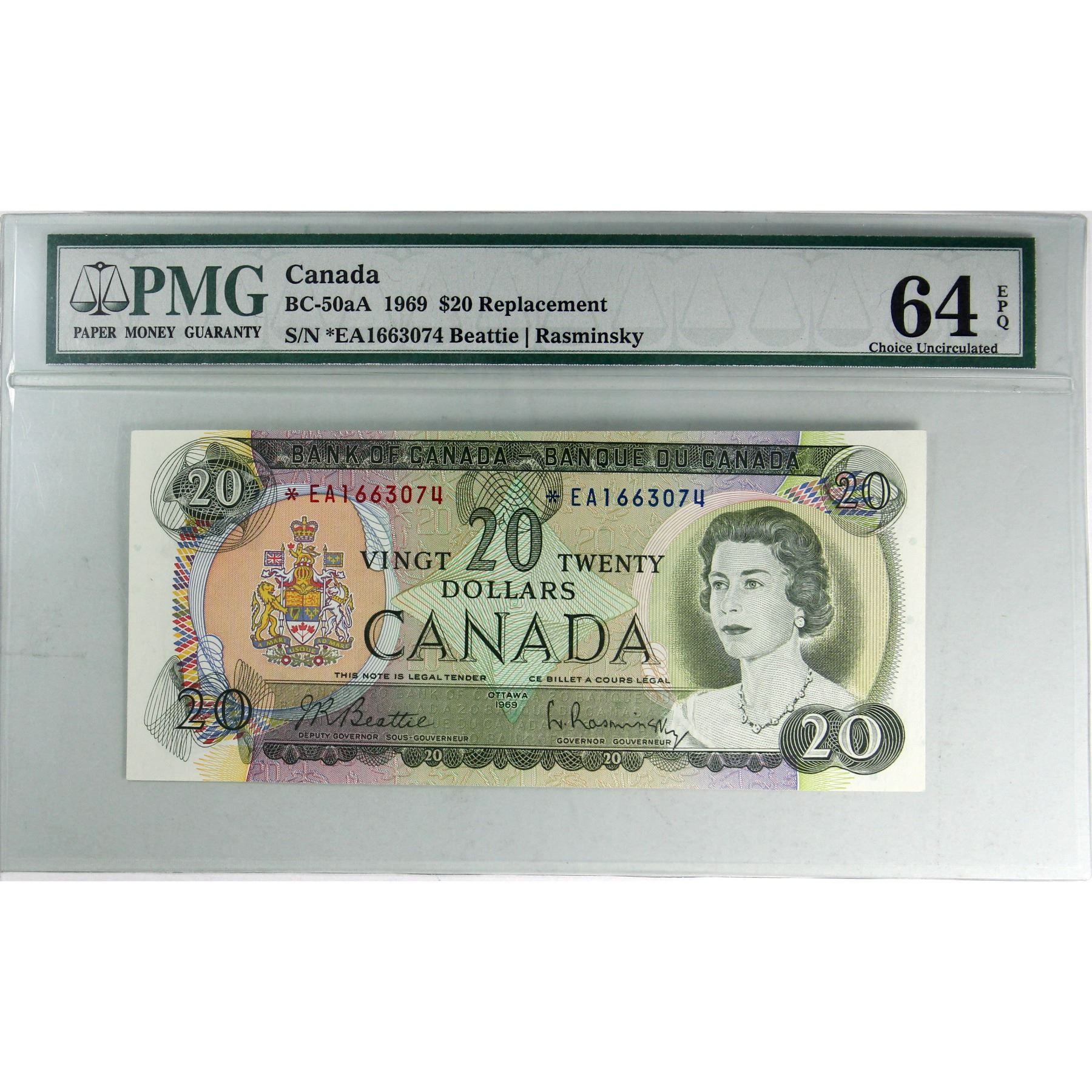 BC-50aA 1969 $20 CUNC64 EPQ Beattie-Rasminsky, Replacement, SN: *EA1663074