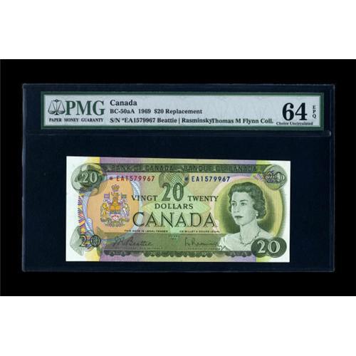 <B>BC-50aA $20 1969</B></I><BR> A high end replacement note graded <B>Choice Uncirculated 64 EPQ </B></I>by PMG.<BR><I>From The Thomas M. Flynn Collection</B></I><BR><BR><b>Shipping:</b> Coins & Currency (<a target="_blank" href="http://www.heritageauctions.com/common/shipping.php">view shipping information</a>)