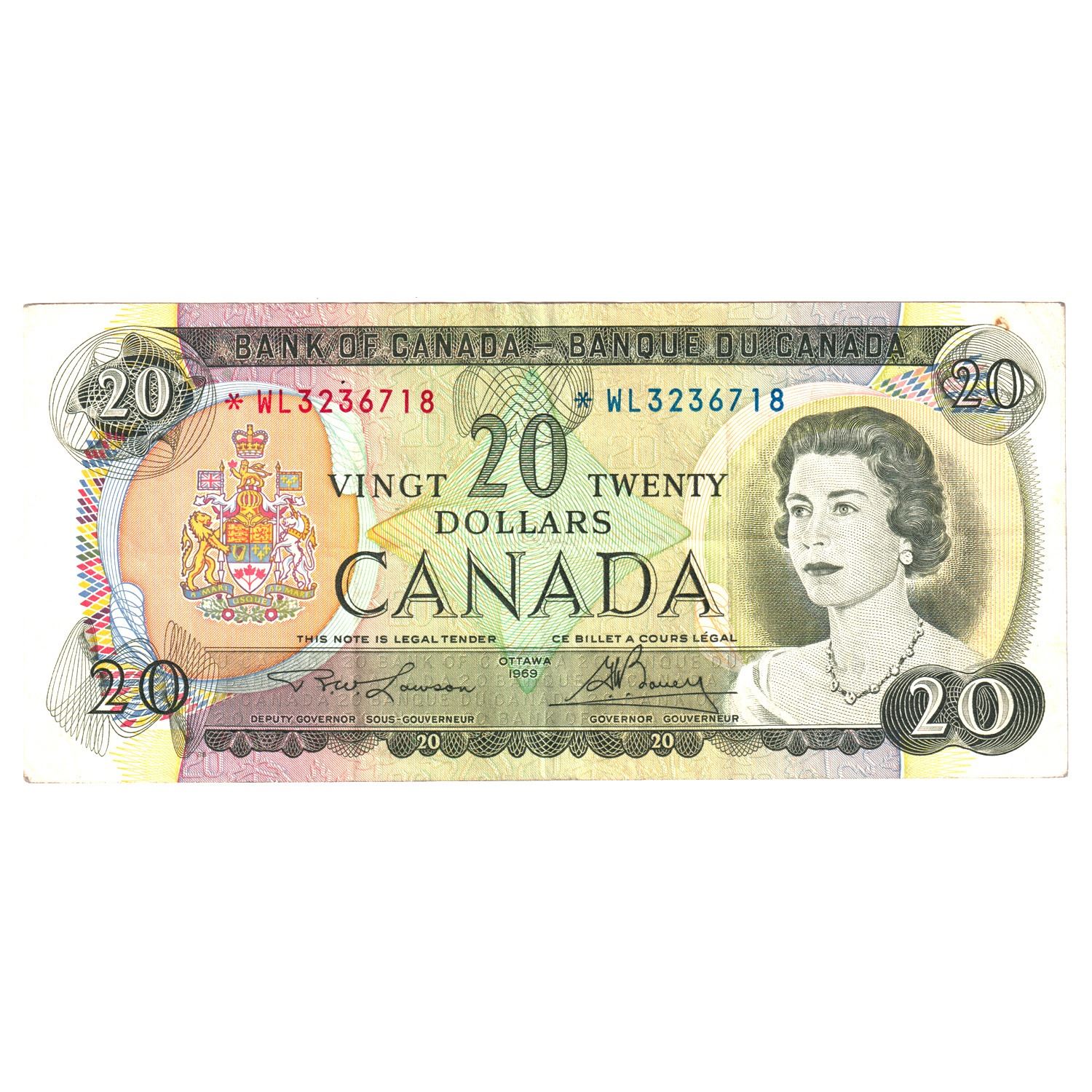 BC-50bA 1969 Bank of Canada $20, Replacement Lawson-Bouey. S/N: *WL3236718 A VF-EF Note.