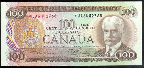 BC-52aA 1975 $100 *J/A6442768 a nice uncirculated example. Scarce replacement note!