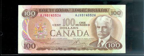 BC-52aA-i, 1975 $100 AJX. Nice about Uncirculated replacement issue. AJX0143526