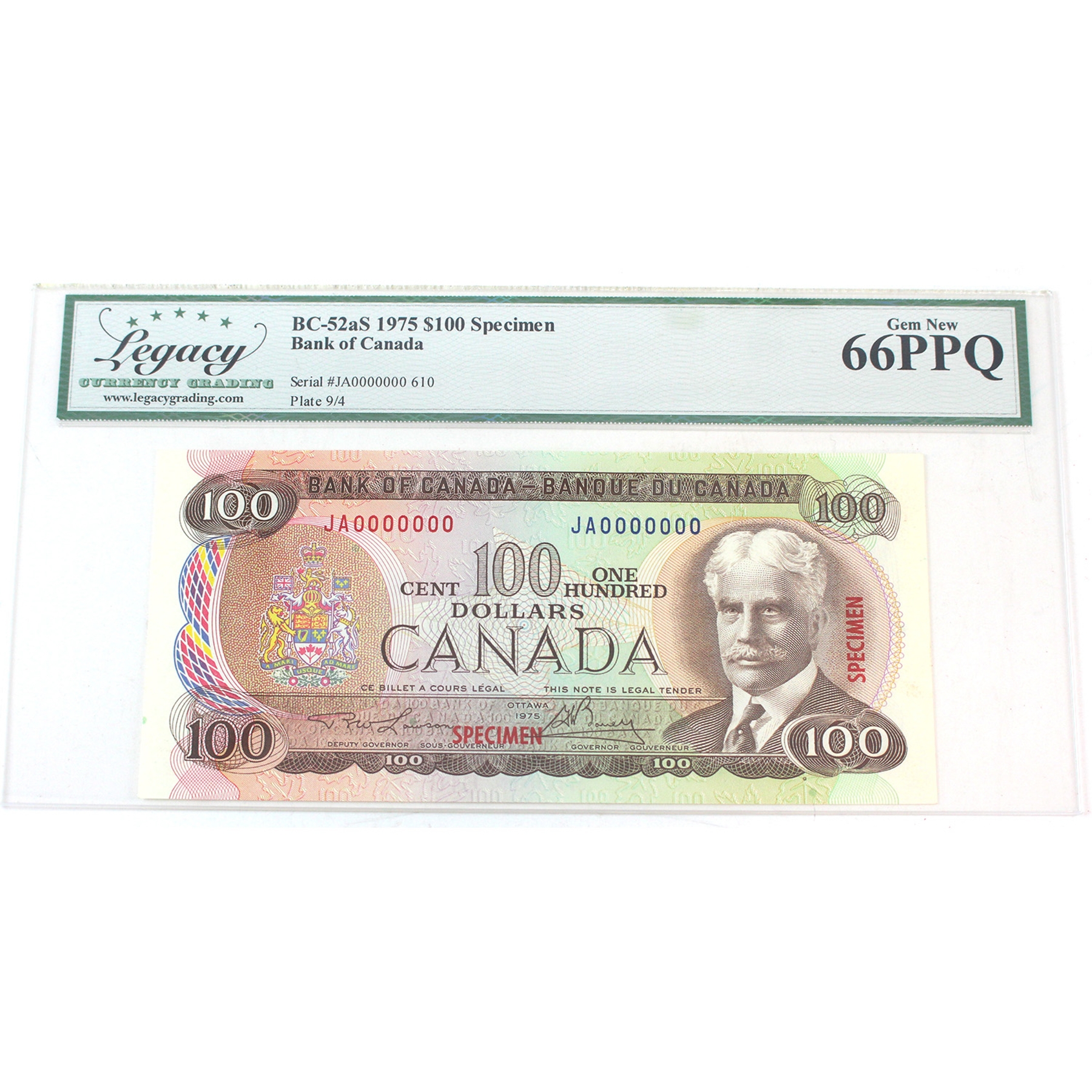 BC-52aS 1975 $100 Specimen Legacy GEM UNC66 PPQ SN: JA0000000 #610