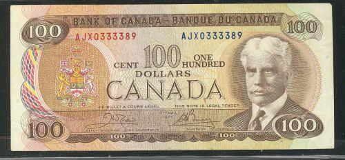 BC-52bA 1975 $100 AJX0333389 A nice and bright EF example.