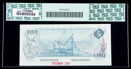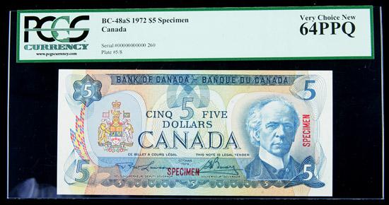 BC-53aS 1979 $5. Specimen. PCGS Very Choice New 64PPQ. From the Bank of Canada auction in November, 1999.