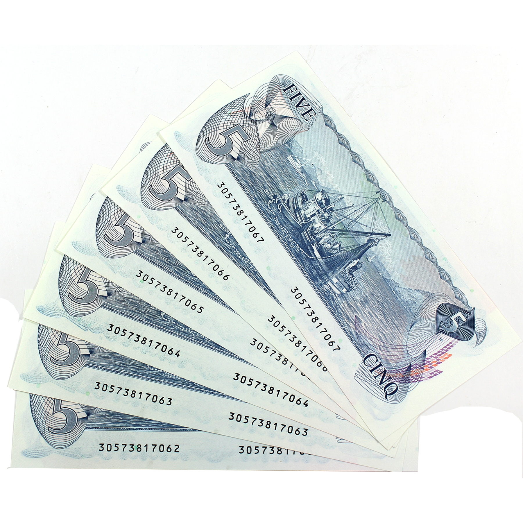 BC-53b 1979 $5 Consecutive # GEM UNC Crow-Bouey SN: 30573817062- 67. 6pcs.