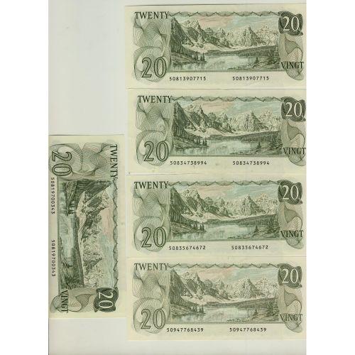 BC-54b 1979 $20. Lot of 5 notes. All UNC