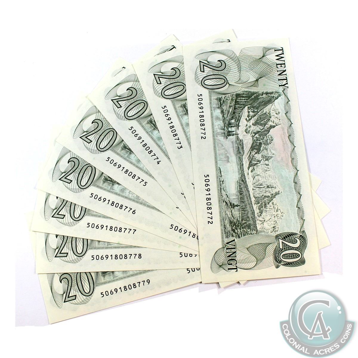 BC-54b. 8 consecutive 1979 Bank of Canada $20, Crow-Bouey, Steel Engraved, S/N: 50691808772-779 all in UNC Condition. 8 pcs.