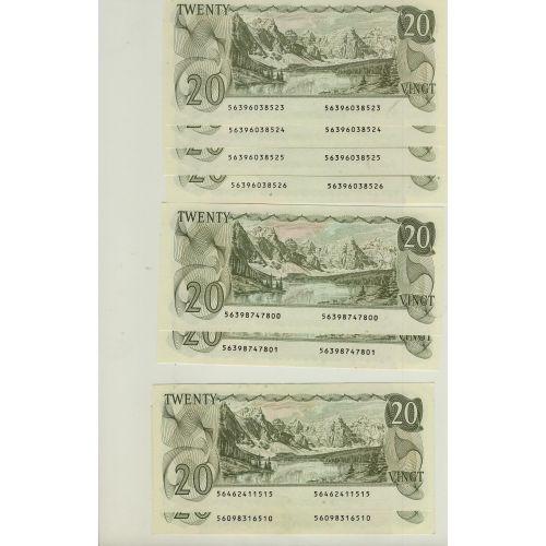 BC-54b-i 1979 $20. Lot of 8 note, 4 consecut
