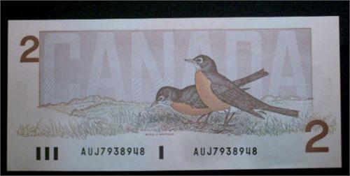 BC-55a 1986 $2 Crow-Bouey AUJ7938948 Uncirculated.