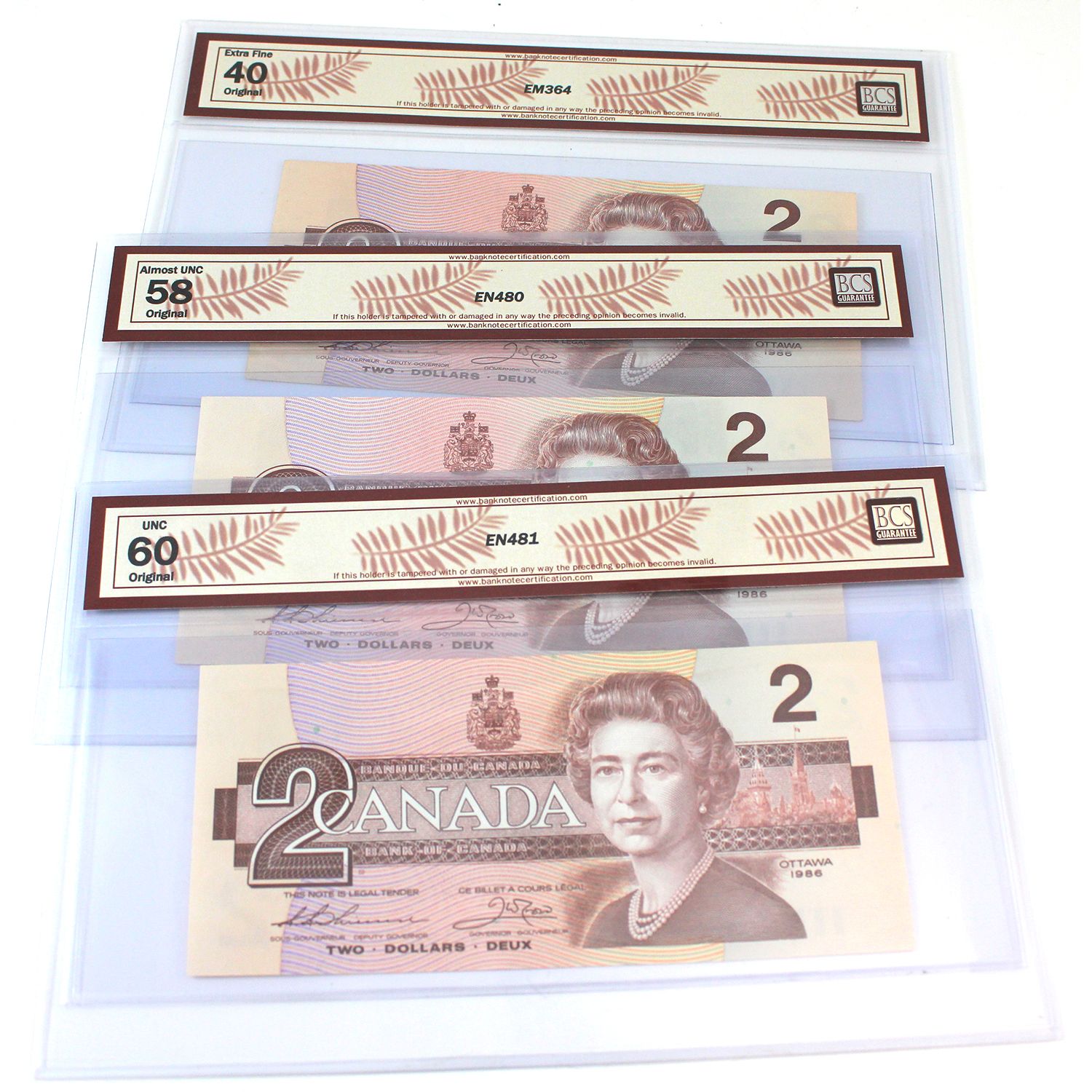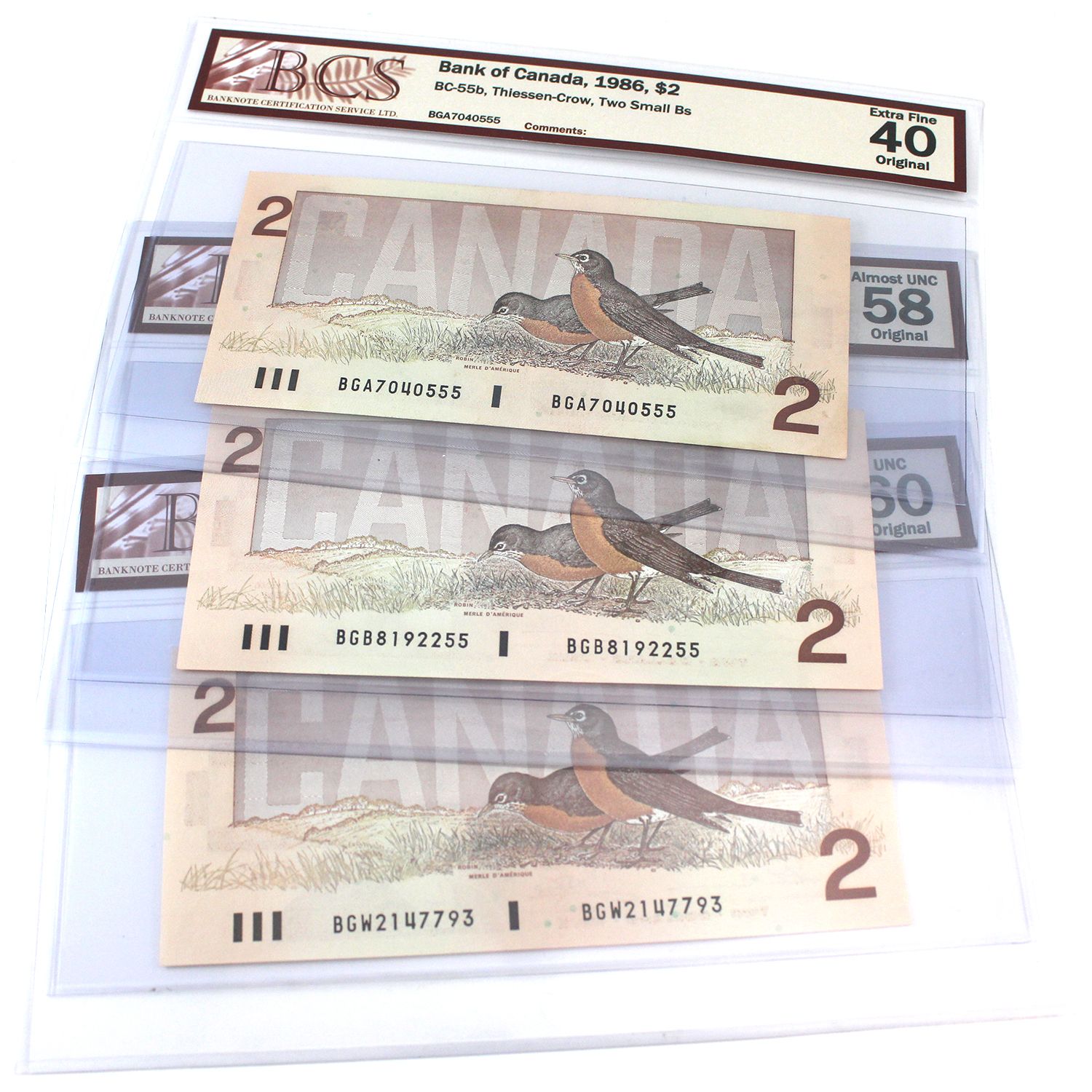 INCLUDES: EF40 SN: BGA7040555; AU58 SN: BGB8192255 & UNC60 BGW2147793. 3pcs.