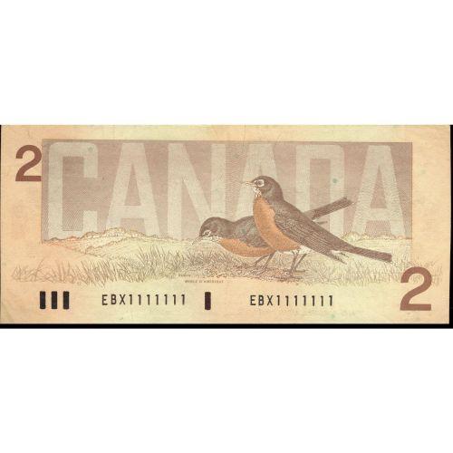 BC-55b 1986 $2 #EBX1111111. VF Light writingA rare double variety. Replacement and solid number example.