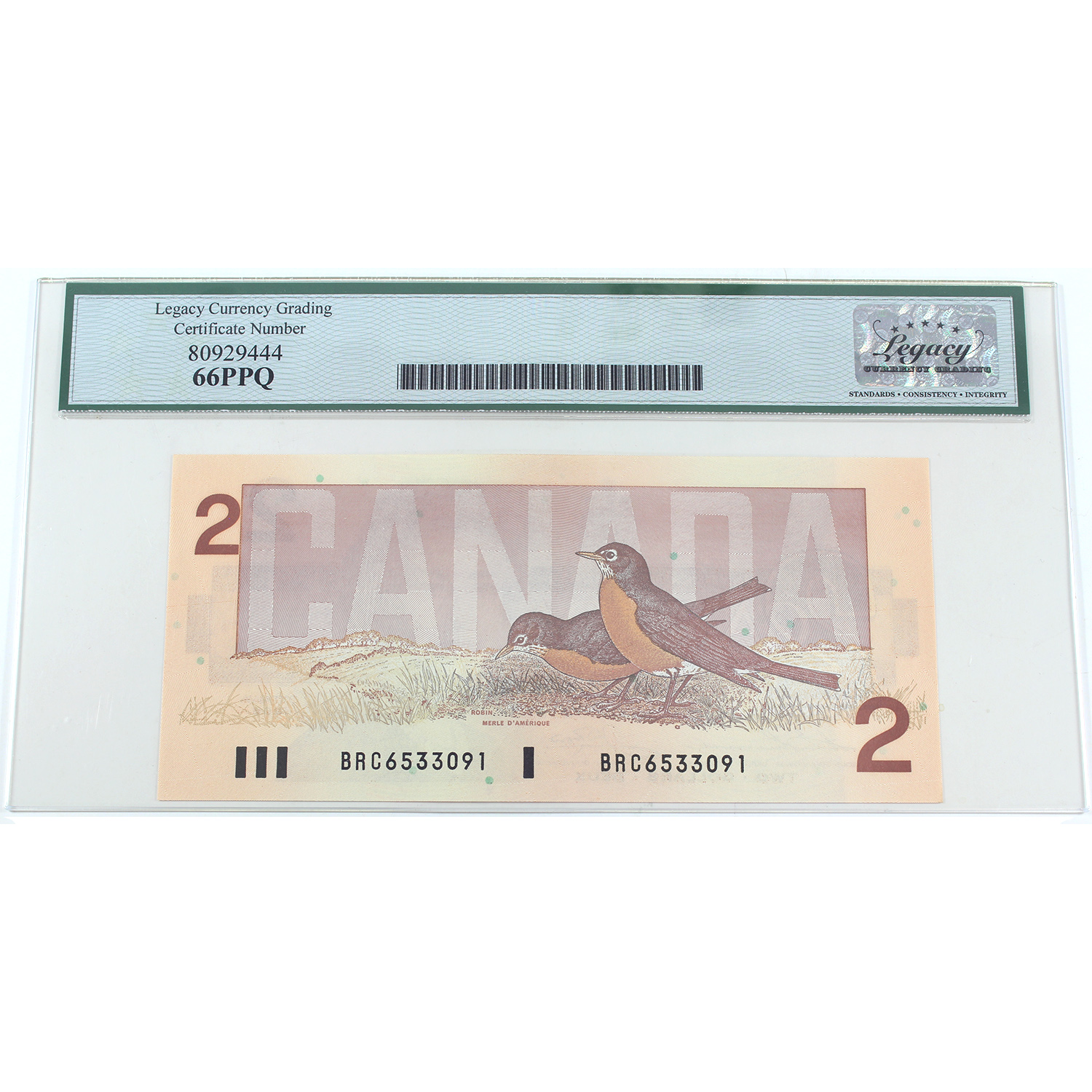 BC-55b 1986 $2 Legacy GEM UNC66 PPQ Thiessen-Crow SN:BRC6533091