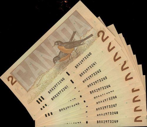 BC-55bA 1986 $2 Thiessen Crow, BRX2973230 to 3239.10 Consecutive Gem notes.