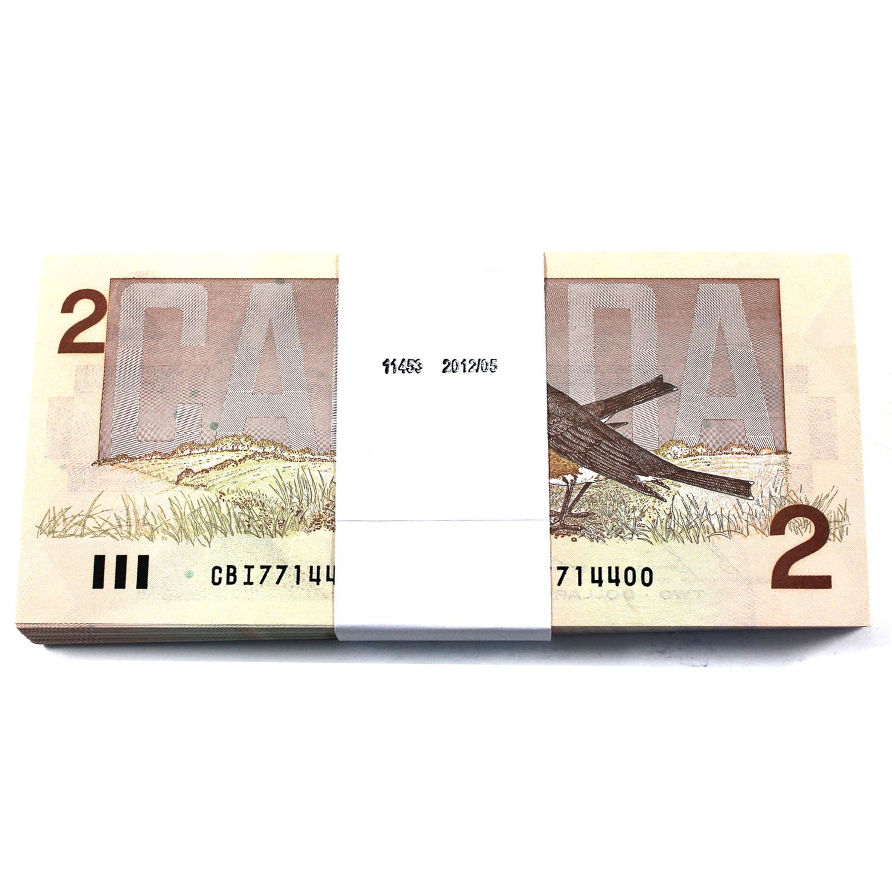 BC-55c Bundle of 100x Sequential 1986 Bank of Canada $2, Bonin-Theissen S/N: CBI7714400-499
