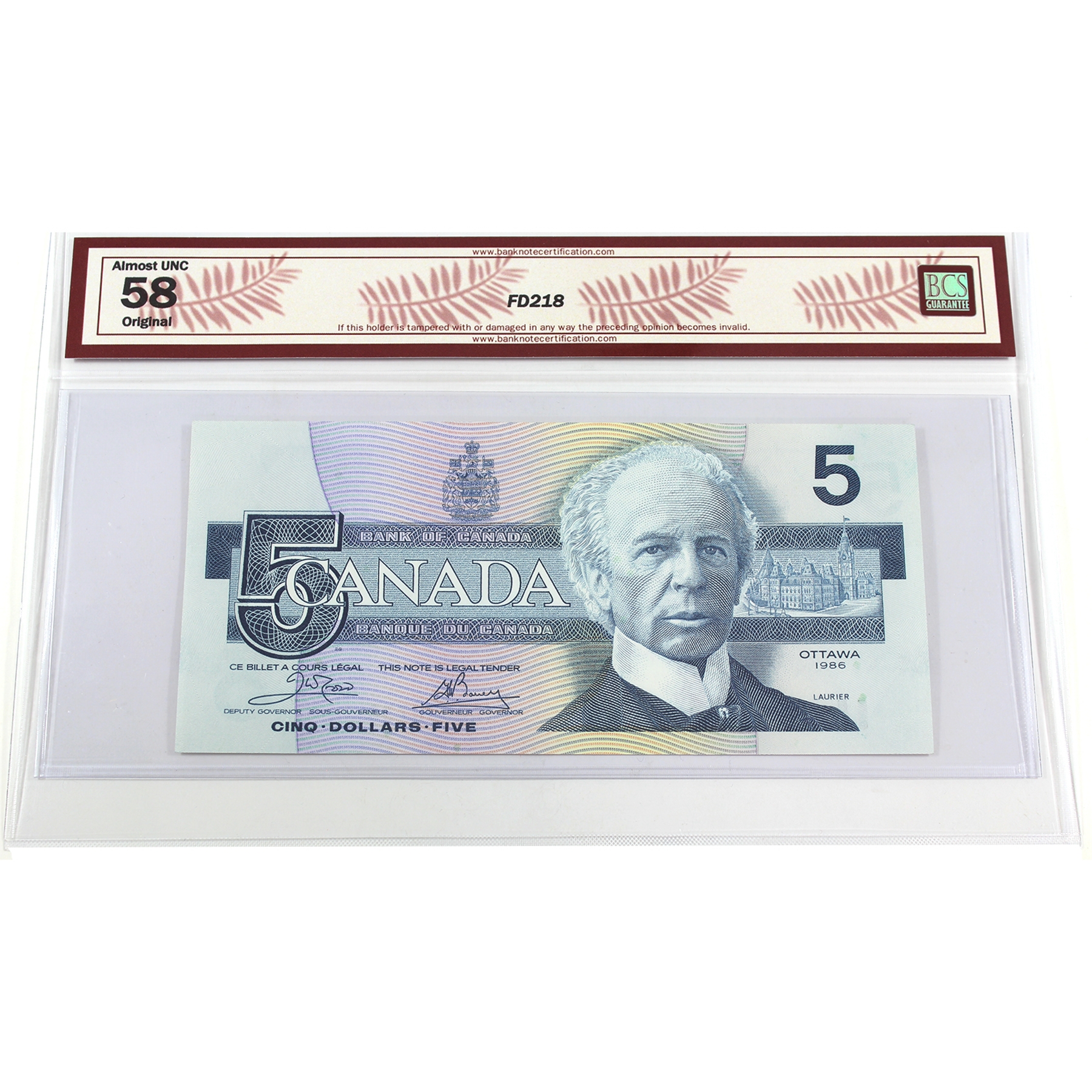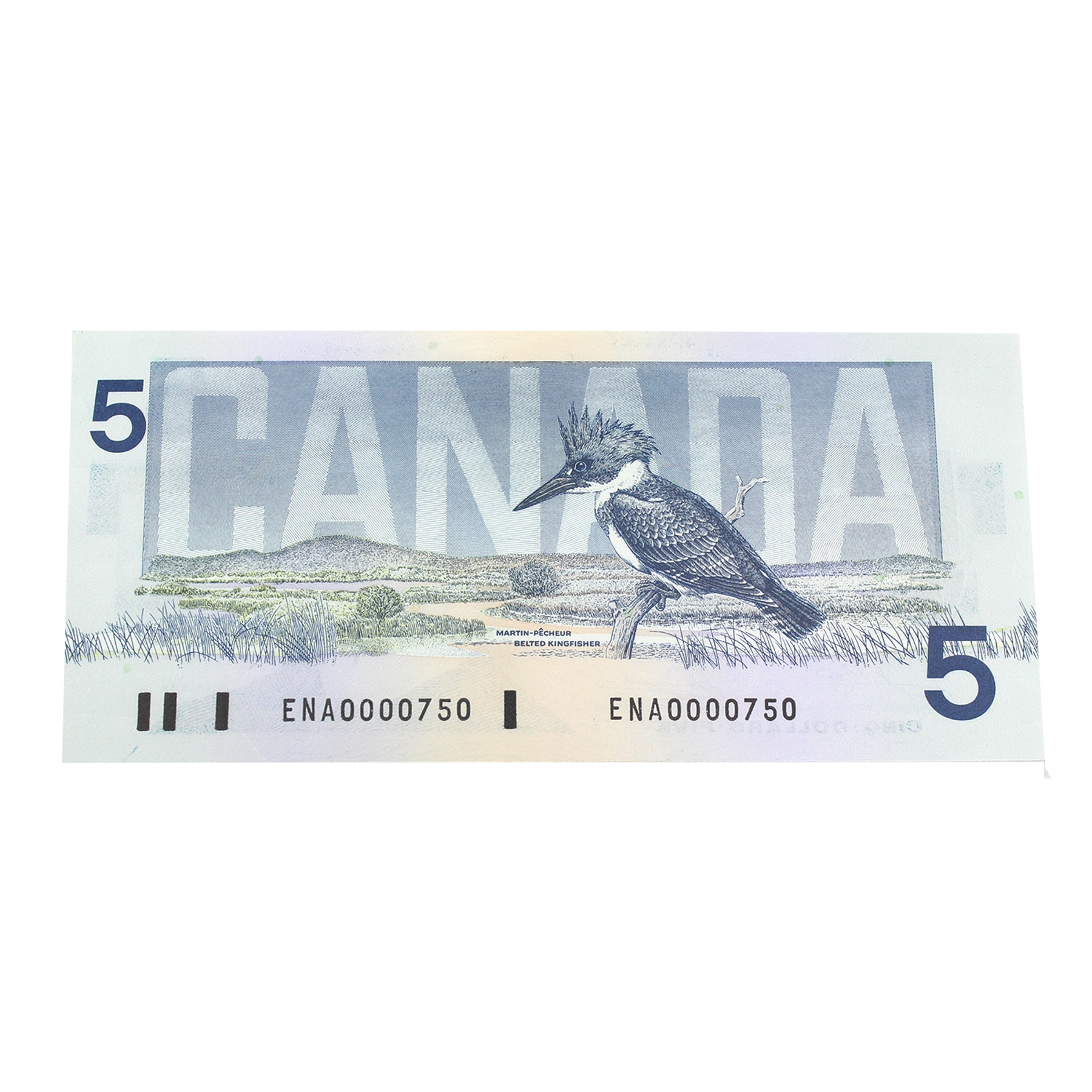 BC-56a-N5-iv 1986 Low Serial # $5 BCS AU58 Original Crow-Bouey-SN: ENA0000750