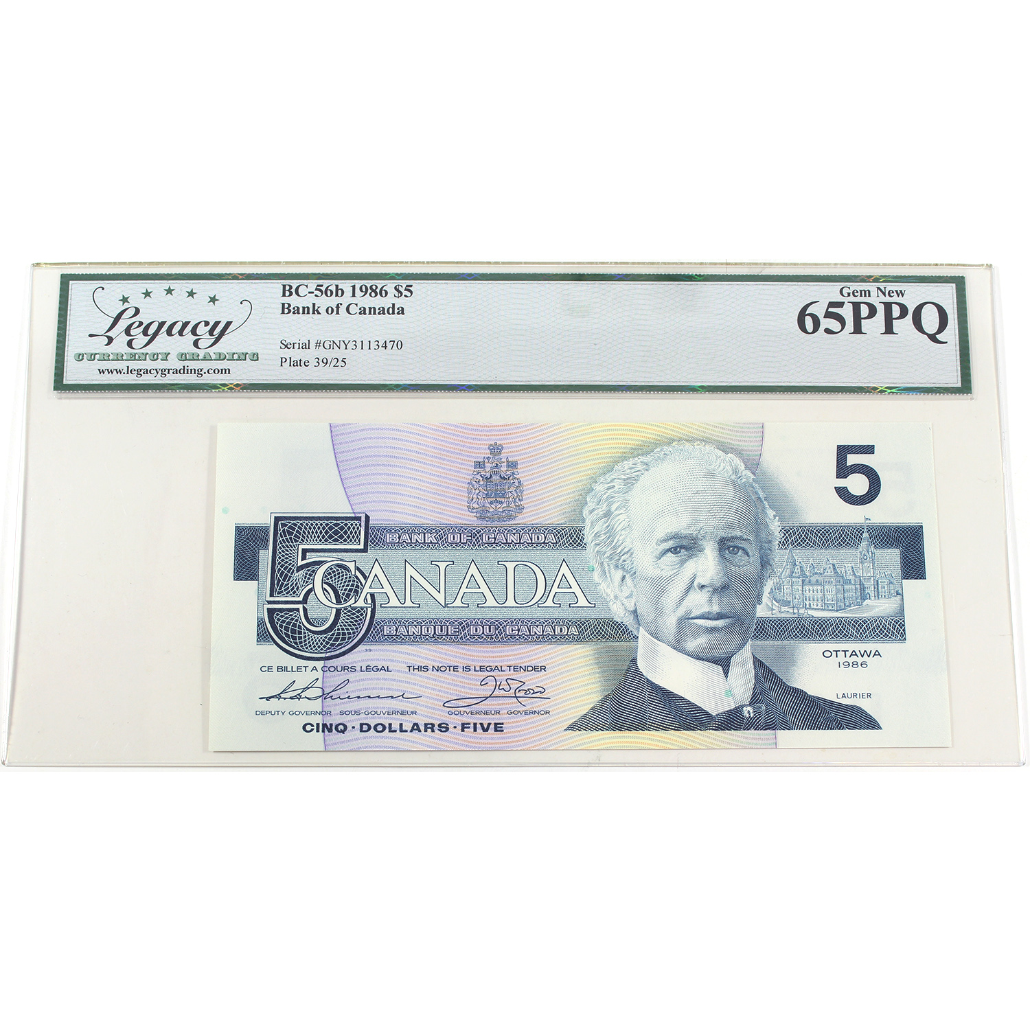 BC-56b 1986 $5 Legacy GEM UNC65 PPQ Thiessen-Crow SN:GNY313470