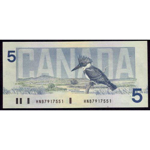BC-56c 1986 $5 Bonin -Thiessen HNB7917551 PMG Gem UNC-65EPQ. Excessively rare prefix note of this modern issue. Believed to be UNIQUE. Of the highest rarity and worth a premium bid! This may be your only chance to obtain this rarity. A museum piece