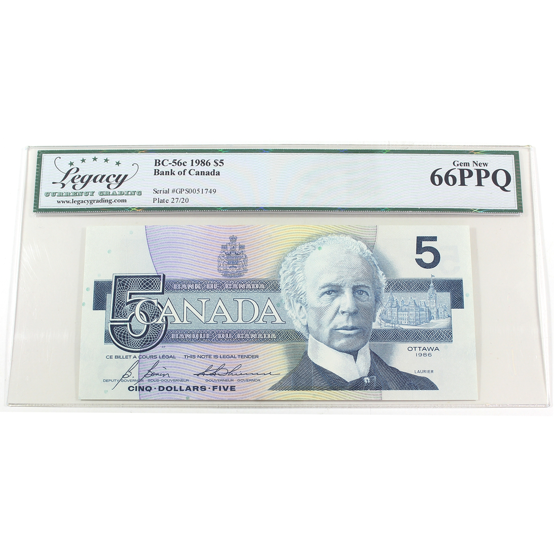 BC-56c 1986 $5 Legacy GEM UNC66 PPQ Bonin-Thiessen SN: GPS0051749