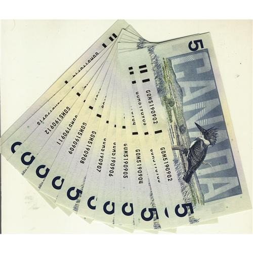 BC-56c 1986 $5. Lot of 13 consecutive Gem Unc notes #GOM5190902 to 914