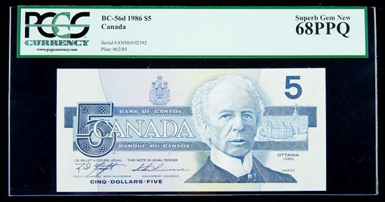 BC-56d 1986 $5. PCGS Superb Gem New 68PPQ. Splendid Superb Gem, the first of two consecutive.