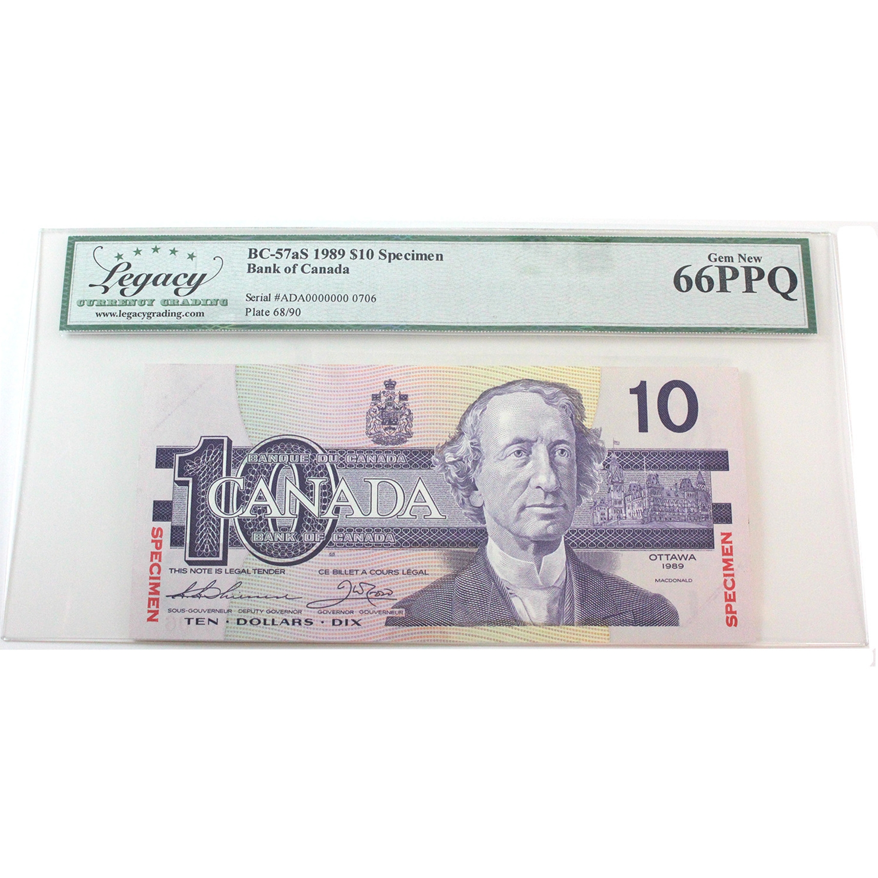 BC-57aS 1989 $10 Specimen Legacy GEM UNC66 PPQ Thiessen-Crow SN: ADA0000000 0706