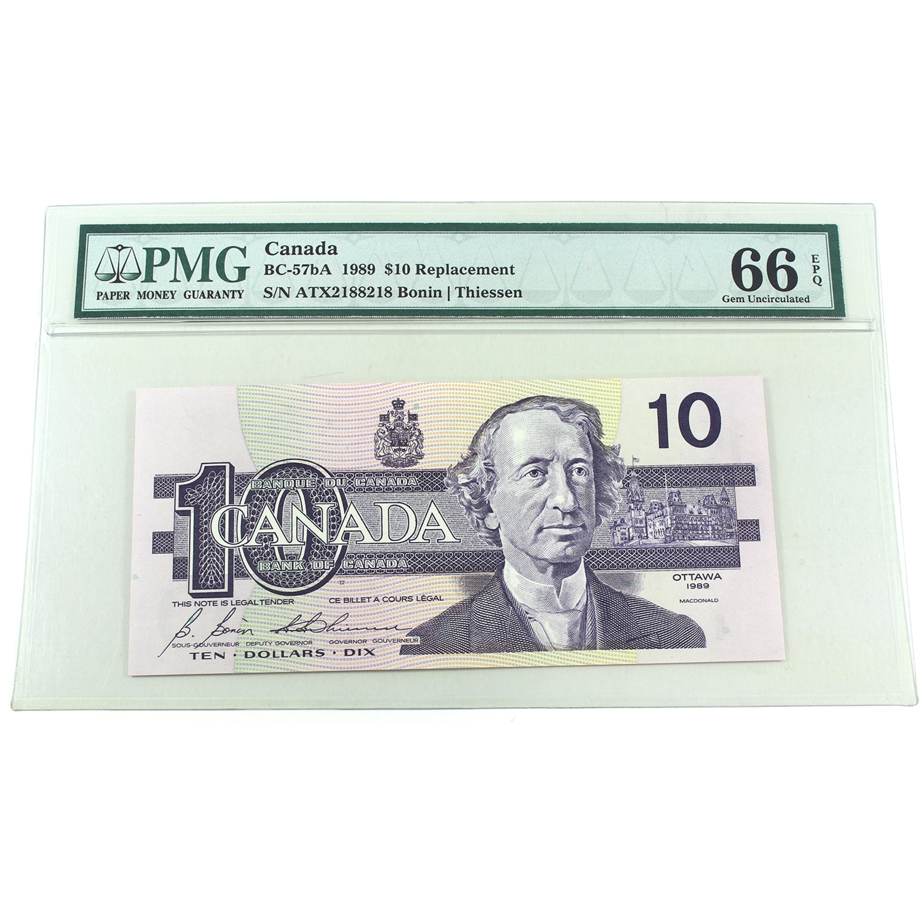 BC-57bA 1989 $10 ATX Replacement PMG GEM UNC66 EPQ Bonin-Thiessen SN: ATX2188218