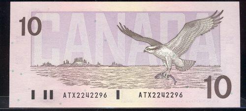 BC-57bA 1989 $10 Bonin-Thiessen ATX2242296 Gem uncirculated. A better replacement note.