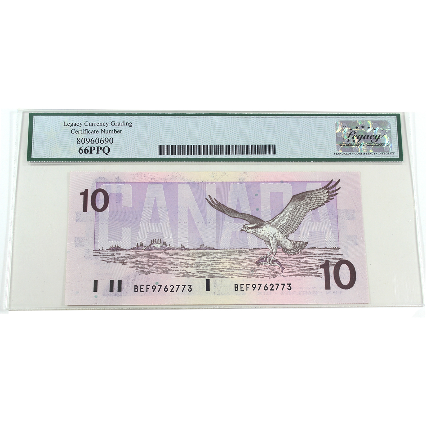 BC-57c 1989 $10 Legacy GEM UNC66 PPQ Knight-Thiessen SN: BEF9762773