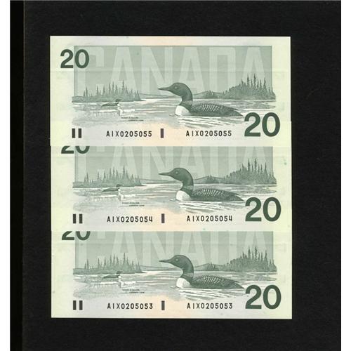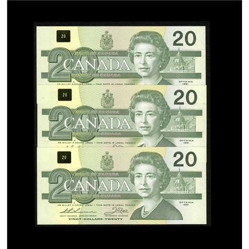 <B>BC-58aA-ii $20 1991. Three Consecutive Examples.</B></I><BR>The third letter "X" in the serial number signifies that these are replacement notes. <B>Gem Crisp Uncirculated.</B></I>