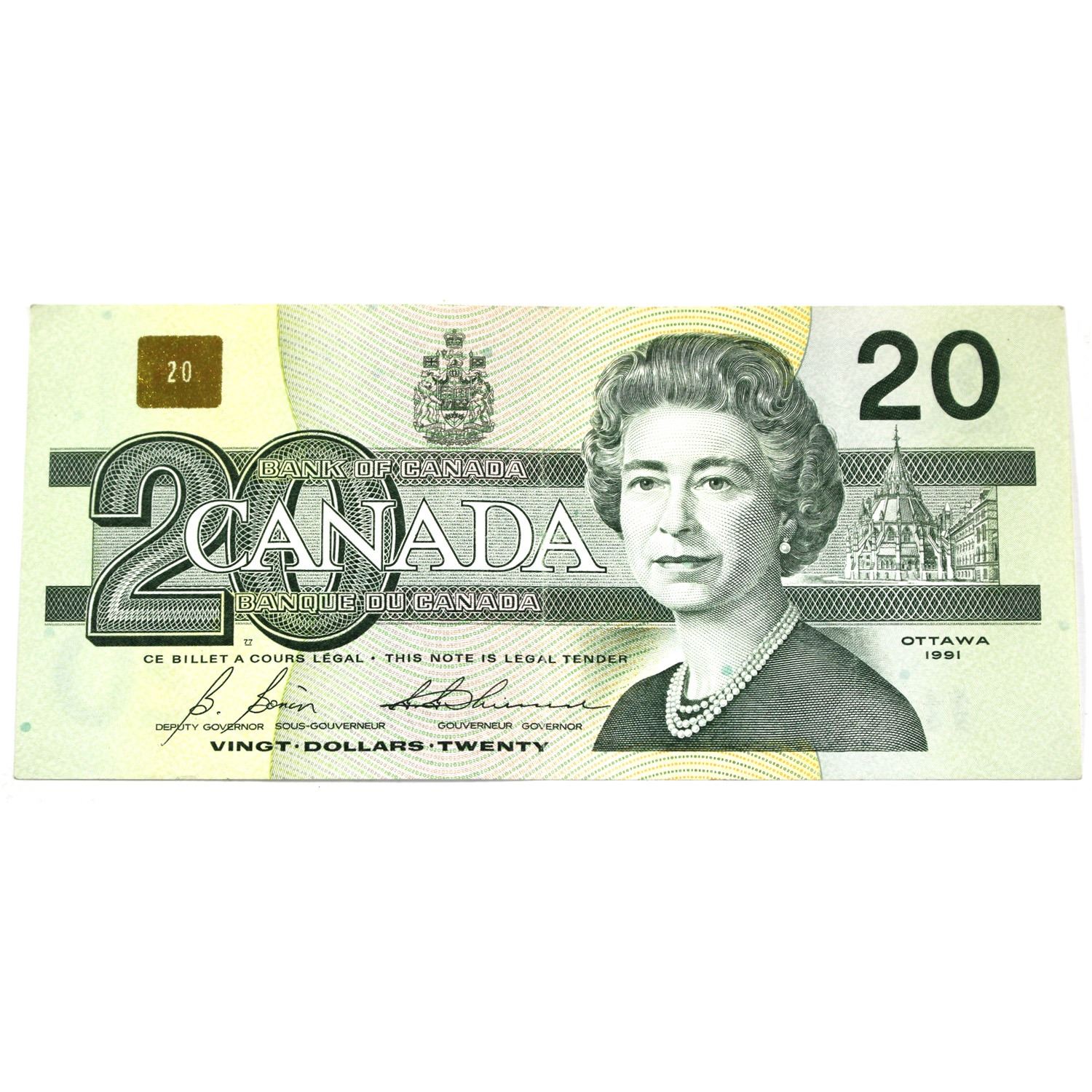 BC-58c 1991 Bank of Canada $20, Bonin-Thiessen. S/N: AVM7728277 A Nice VF of this scarcer prefix.